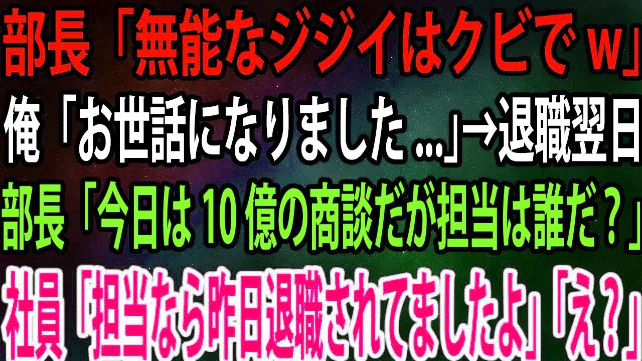 本社から異動してきた部長「無能なジジイはクビでw」俺「お世話になりました…」→退職翌日、部長「今日は10億の商談だが担当は誰だ?」社員「担当なら昨日退職されてましたよ」「え?」【感動】