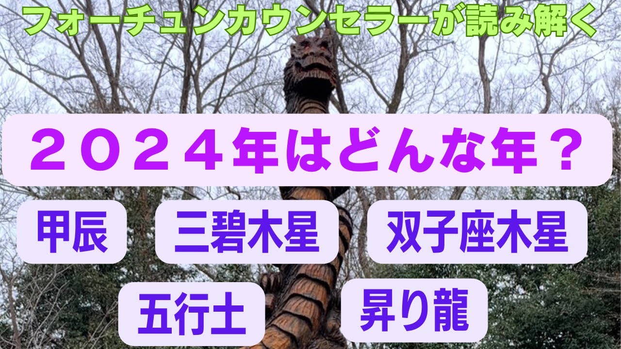 こんにちは麻生ヒカですこんにちはぐさん です開けましておめでとうございますお めでとうございます今年もよろしくお よろしくお願いしまって言ってもねあの 旧暦で生きてるからうんまだ開けてないん だけどねああ2月だそうそうそう正確には 2024年の2月の4日はい日曜日だね うんうんうんえ17時27 分17時27分27分から2024年が スタートするんだけどねうんうんはいじゃ まだあと1ヶ月はないけどねうんうんうん あ1ヶ月あるかあるねあるねぐらいま ちょっと残っていますがえっと今回は来年 の流れ2012年の流れということではい まず行きますねはい木上の立つっていう年 ですふーん昨日えのまこち出してくれると 思うけどうんこうんいうにねうんその木の 立っていうの先にまずその木の部分なんだ けどうんあのね大きい木もうね天空に 向かって天に向かってまっすぐ伸びてる すごい大木っていうかな大きい木っていう その正位ってその意味があるのねうんうん そのなんていうか自然の現象みたいなねあ でその高閉廷には全部その自然の現象が ついてるんだけどこの木っていうのが本当 にもうなんかよくあるじゃないご親睦的な うんうんとかあと別にご親睦じゃなくても 森とか行くとさもう太くてまっすぐこう空 に向かって伸びてるそれがえっと木のうん うん意味なのねと物事がこうまっすぐ進化 成長発展してくていう上に向かってって いう意味合いがあるからいい年だうんそう そうそうだからなんだろう自然の中行くん だったらその森とかさうん大木とかそう いうのがあるところでいいこマイナ水温か なんかねうんうんあのするといいんじゃ ないかなと思っでその立ね次ね立はえっと 江戸12市の中で1つだけえっと架空のね 生き物現実に存在しない生き物うんうん うんまドラゴンとかも言うけどねだから その1個だけその存在しないっていう意味 でなんか個性的でありちょっと変わって たりするって言われてるのうんだからそう いうなんか変わったものが例えばよ流ると かオリジナリティとか個性が尊重されると かうんそういう年になるかな流行ったり 注目されたりうんうんうんねあとほら なんか水脈を司どるっていうじゃない水 ドラゴンてああドラゴンねうんうんうん水 の流れだからその川とかさ海と かうんうんそういうところでちょっと ドラゴンのうんこうエネルギーをねあの いたくっていうのもいいかもしれないしな うんうんであとねこう2つ掛け合わせると さうん登れるじゃんだねうんまさに登れる