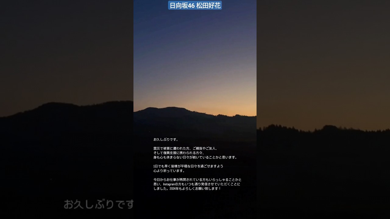 日向坂46 松田好花 能登半島地震で被災された方々へメッセージ