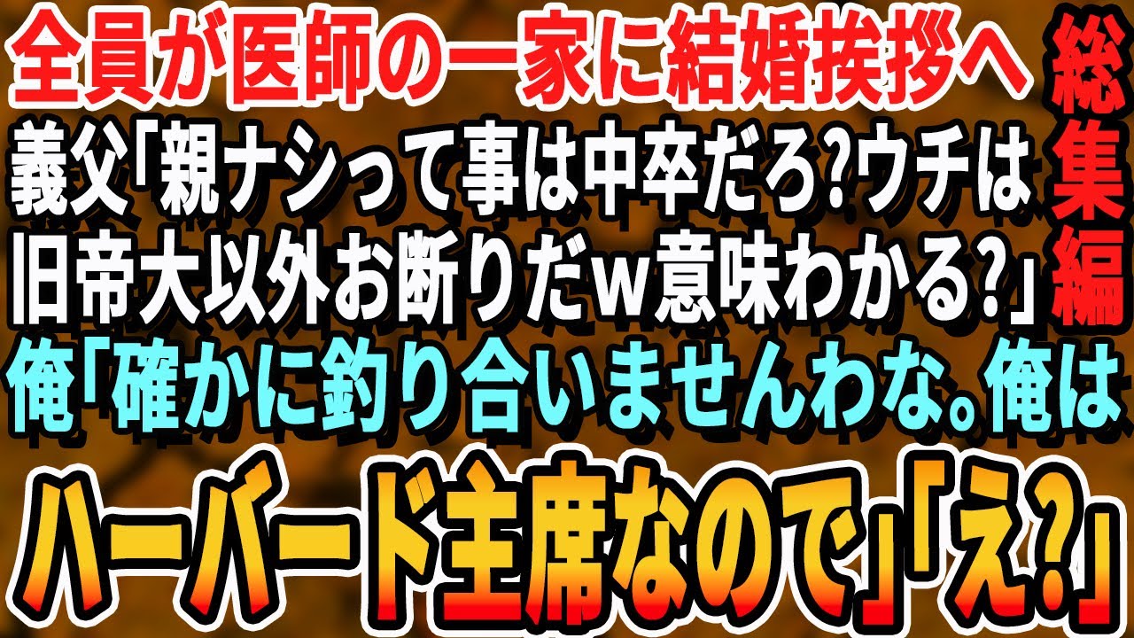 【感動☆厳選5本総集編】一族全員が医師の彼女の実家に結婚挨拶に行くと、義父「両親がいない?てことは低学歴か!大学も出てないような底辺がよくうちに来れたなw」彼女「お父さん、彼ハーバード大学卒よ」朗読