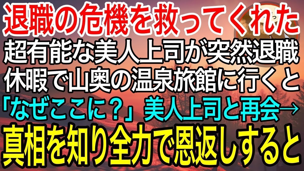 【感動】退職の危機を救ってくれた超有能な美人上司が突然退職。長期休暇で山奥の温泉旅館に訪れると美人上司と突然再会「どうしてここに…?」→衝撃の事実を知った俺は…【泣ける話】【良い話】