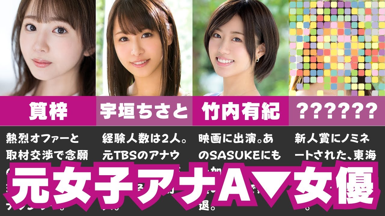 優香は元地方局の女子アナウンサーで 2018年にデビューしました身長 167cmFカップを持つ彼女はは超神 スレンダーで抜群のスタイルを誇ります 彼女のデビュー作でははじいながらも セクシーさを放つ姿が魅力的です彼女の 明るい笑顔とエネルギッシュな演技は注目 の的です田中七海田中七美は元地方局の アナウンサーで2022年にデビューした 新身の西上です身長158cmCカップを 持つ彼女は30代の小悪魔的な魅力が特徴 です彼女の美しい色白ボディと上品な魅力 は多くの人々を魅了し続けています彼女の 作品では特に人妻系の役柄が見所です宇垣 千里宇垣千里は四国の地方局で アナウンサーをしていた経歴を持ちます 2016年にプレミアム専属女優として デビューし156cmの身長とBカップの スタイルを持つ彼女は清楚なイメージと スレンダーな体型が特徴です彼女の作品で は控えめながらも激しいリアクションが見 られますカカのカカのは北海道出身で元 地方局アナウンサーです2020年に デビューした彼女は164cmの身長とB カップのバストを持ちスレンダーながらも 清楚で美しいルックスが魅力的です彼女の 作品では清楚な外見とは裏腹の情熱的な 演技が楽しめますアイドルグループに言っ てもおかしくないルックスで多くのファン を魅了しています竹内幸竹内幸は山梨県 出身で2019年にプレミアム専属女優と してデビューしました158cmの身長と Dカップのバストを持つ彼女は地方局の アナウンサー出身でその清楚な外見と スレンダーな体型が特徴です彼女の作品で はアナウンサーらしいしっかりとした 受け応えとスポークな背景が絡んだ演技が 魅力的です山岸愛花山岸愛花は神奈川県 出身で2017年にプレミアム専属女優と してデビューしました161cmの身長と Cカップのスタイルを持ち東海地区の地方 テレビ局でアナウンサーをしていた経歴を 持っています彼女はエビスマスカッツの メンバーとしても活躍し要言な雰囲気を 持つ彼女の作品は大人の魅力を求める人々 に特におすすめです元アナウンサーの セクシー女優はいかがでしたか 気になった女優がいたら是非コメントで 教えてくださいこの動画が気に入ったら チャンネル登録やいいねボタンのクリック をお願いしますさらにディープな情報が 欲しい人は概要欄のXをチェックしてみて くださいYouTubeでは流せない とっておきの情報を発信していますご視聴 ありがとうございましたまた次の動画でお
