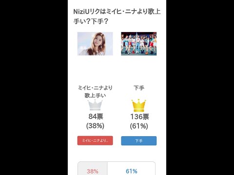 #NiziUリク は #ミイヒ・ニナより歌上手い ? #下手 ?というテーマの投票結果です。