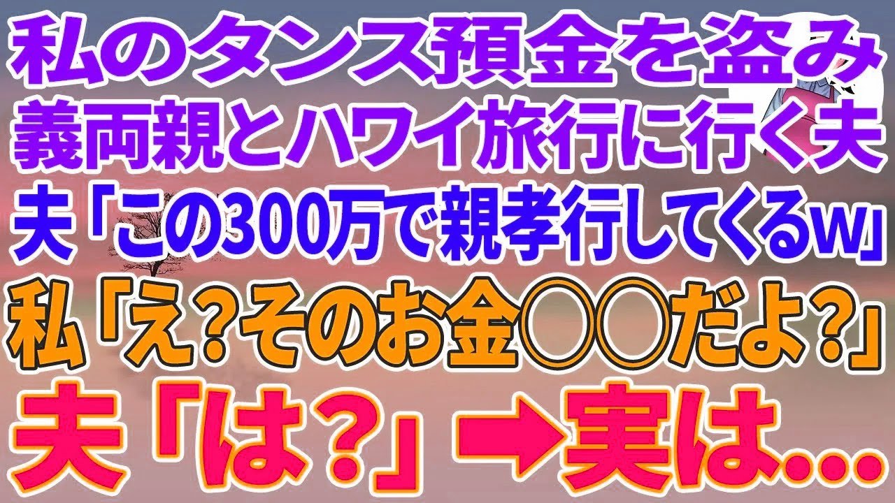 【スカッと総集編】タンス預金を盗み義両親とハワイ旅行に行く夫「この300万で親孝行してくるわw」私「え?そのお金〇〇だよ スカッと