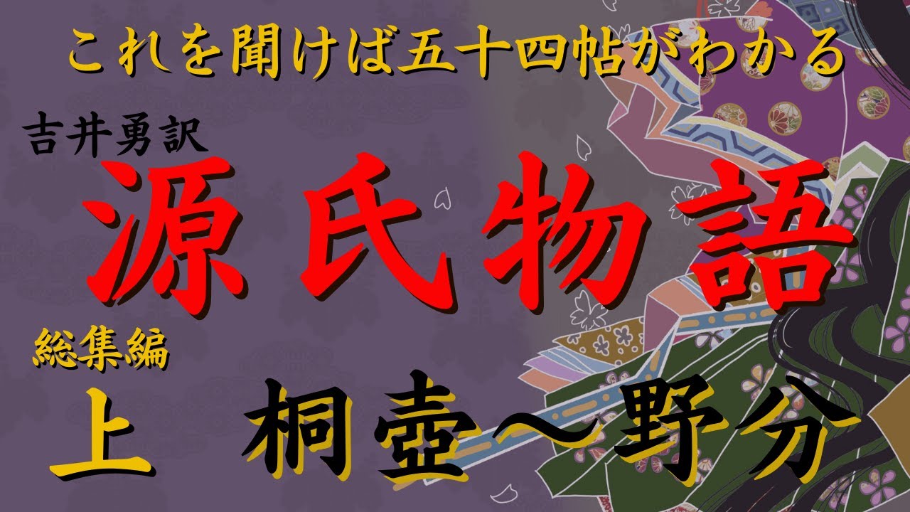 これを聞けば「源氏物語」がわかります。吉井勇訳、紫式部、「源氏物語」総集編:上【桐壺~野分】元放送局アナウンサーの朗読、2024年NHK大河ドラマ「光る君へ」作業時間、睡眠導入、テスト対策にも。