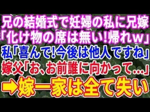 【スカッと総集編】実兄の結婚式で妊婦の私に向かって兄嫁が「バケモノの席は無いから帰って」私「はーい!後悔しないでね」兄嫁父「お、お前誰に向かって…」 兄嫁一家は全てを失うことに…【修羅場】