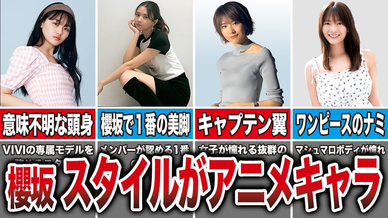 は桜坂46でスタイルがいいと言われて いるメンバーを6人紹介しましたそれぞれ のメンバーがそのスタイルの良さを武器に 雑誌やモデルやラウェイで大活躍してい ますね桜坂46は今後ますますの活躍が 期待されているグループであるため今後も 他方面での活動が見られることが考えられ ます動画をご覧いただきありがとうござい ました是非チャンネル登録と高評価も よろしくお願いします