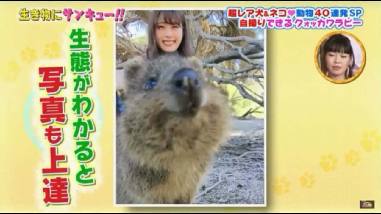 [音楽] 見たことない世界が注目するアイドル 動物アイドルといえば本日のゲストNMB 48の渋谷 さん こんにちは12年前猫大好きな可愛い 女の子でし [音楽] たこ 渋谷が評だったのでご褒美とし てある超可愛い動物に会いに日本から飛行 機で14時間西オーストラリアパース へさらに高速戦に乗って30分到着したの は ロットネスト自然豊かなこの島は様々なが して島全体が国立公園に指定されてい ますこの小さな島に世界中の人が集まって その可愛い動物を見に来ているん です早速渋谷さんも探しに行く [音楽] とすぐ 発見さらにもう1匹ジャンプしながらやっ てきまし た [音楽] この動物は [音楽] 何西オーストラリア ロットネストここでしか会えない珍しい 動物がそれ [音楽] はクオカワビワラビより小さめ サイズ日本足で移動するカンガルーの仲間 です日本では動物園でも見ることができ ない貴重な 動物このクオッカワラビーと一緒に写真を 撮るのが今世界中で 大人気みんないい写真を撮ろうと必死に なって ます 渋谷さんもクカアラビとの自撮りに挑戦で もその前 にクカビーのことを詳しく知るため レンジャーさんに聞いてみ ます渋谷 [音楽] ゴーゴー ロトス アイラ は効果がいるんです かこの島には2万8000円から3万等 いるわええ う本当ですか リアリ以前はオーストラリア本土にも生息 していましたが今はロッドネス島にしか