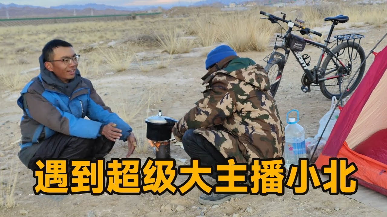 小伙骑行青海,遇到超级大主播小北,一起露营夕阳下的草原【真男人老黄】