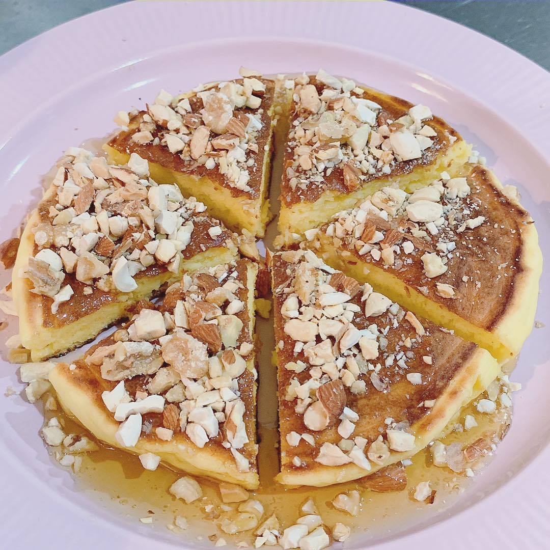 @小島瑠璃子: 深夜のパンケーキ。 牛乳を絹ごし豆腐に変えると ふっくらモチモチ。…