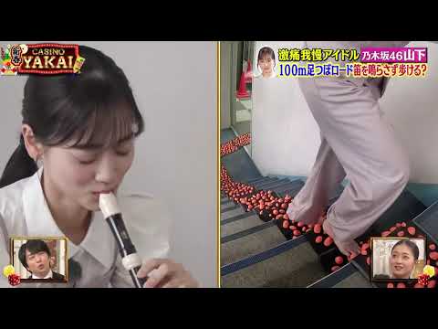 [拍手] なるほどなるほどさあということで ウエスト君はできるということでできるに かけたヒさチーム1ポイント獲得です ありがとうござい ますさあここでお知らせですえ夜カジノで はこの坂すごいぞという全国の坂募集して まいります詳しくは番組公式ホームページ をご覧いただきましてよろしくお願い いたし ます新春カジノスペシャル続いて は以前カジノ すいすごい え お痛いんだもうあそこ であこっから危ないのか そうドア大丈夫さ泳たさし泳たあったええ えジャンプなんかできるのあれ 注目面白いこれい 女原が挑戦しをられた すごいこのこすごいね何やってもける私 こそが最強だという新たな挑戦者がそれが お願いし ます乃木坂46山下 水昨年紅白戦に出場さらに日曜劇場下城事 にも戦した今注目の女優ダガじり結構この 番組の足ツボの企画あの今までも拝見させ ていただいていたんですけどじゃないよ 多分私が芸能界の中で1番得意なんじゃ ないかなていうレベルで通学が割と鈍っ てる方かなていう魚なのなんかマッサージ とかも全然1番強くしてくださいっていう ことが多いですしじゃあもう足つぼぐらい はい余裕かなとそうですねなんか へっちゃらで普通の地面と同じぐらいな 感じで行けちゃうんじゃないかなと思って ますとにかく足ツボに地震を覗かせる 山下そこ で今回はTBS局内に全長 100m途中3つの看を用意した特別 コースを 設置リコーダーの音を鳴らすことなく ゴールとなる楽屋に到着すればチャレンジ 成功となるさあスタンバイは完了この足に 満々といった感じの山下でしたが果たして クリアすることはできるのでしょうか いよいよスタート [音楽] ですスタートしました顔顔どうかなまずは 足ツボの感触を確かめるよういやもう慎重 に足を踏み出していますが痛いっすよ普通 はこれはどうなのか笑ってってってる想像 より来てんのかな危ないさらにもう1歩 踏み出すがこのスピードへっちゃらの割に は痛そうかこのスピードで確かに100m