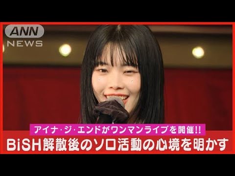 ビッシュにやってた時 のソロ活動も帰る場所があったビッシュっ ていうだからソロでいっぱい好きなこと やって帰る場所にちゃんと帰ってそれが 自分の8年間でし たアイナジエンドさんがウィッシュ解散後 初のワンマンライブを開催ソロ アーティストとして活動する現在の心境を 明かしました久しぶりですファンマン ライブは ビッシュ解散して今日が初めてで私はれて いる わりその [音楽] の世界は どこにもないよだけど今ここを悪くた希望 が 見当たらないだけどあなたがここにいる からビッシュやってた時 のソロ活動も帰る場所があったビッシュっ ていうだからソロでいっぱい好きなこと やって帰る場所にちゃんと帰ってそれが 自分の8年間でした ポってなくなっ て正直未だ に1人でライブするの は怖い時もあり ますなかなかうまくいかなくてやっぱり私 はビッシュに育ててもらいまし ただから1人でもこの曲は歌っていこうと 思いました大切曲を持ってきました たにも聞こえ ない り投げずに見てたまだ夢が覚め ない 投げてた そ [音楽] エドさんがミッシュ解散後初のワンマン ライブを開催ソロアーティストとして活動 する現在の心境を明かすテレビ朝日AI アナウンサー花とゆいがお伝えしました
