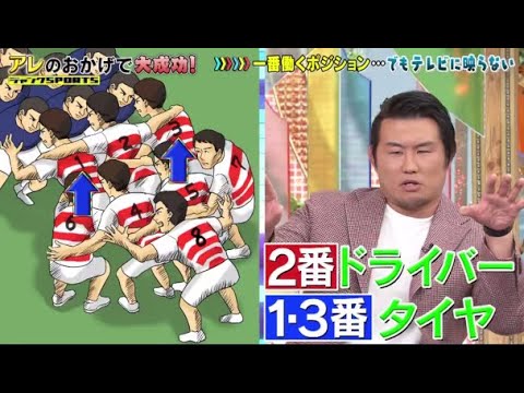 3番横のねプロップの方がですねまタイヤ みたいなもんなんですよで我々4番5番 っていうロックていうポジションですねま エンジンみたいなもんで我々が押さないと 彼らは前に行かないですよ進めないもんね 進めないだけどねなんだろうスクラムって ガっと押すとやっぱね前の1番2番3番が すごく称えられるんですよ あれエンジン僕らじゃないかなと思うんだ けどだけど4番5番ってやっぱ写んない からも黙ってぐっとうんよかったって思う ことが多いんですねちょっとマコ生は ちょっとそこをねちょっと声を大にしてね ちょっと声大にしてあの放してほしいなっ ていうの今日言いたかったこと はいよくわかりましたありがとうござい ますさああれのおかげでスーパースター 続いては後悔しているあれについて伺い ましょうこちらですえはいあの病院に行っ ておけばえこれどどういうことですか高校 時代ま本当に精神論がやっぱりね中心に なってこうトレーニングをしていくんです けどもまある時僕膝左膝がすっごく痛くて ものすごく晴れてですねで監督にこう行っ たんですね僕ちょっと膝がおかしくてダメ ですって言ったらたら監督は見ておこれ すげえ晴れてんなって言いながら走ったら 治るようんえって言われたんです普通は 普通は病院行こう病院病院ですよねだけど 監督の言うことは絶対ですからで走って ですねこれ1ヶ月ずっと痛みがあるわ ずっと痛いんですよでボールも蹴れない ですしで1か月間僕ずっと走りだけさせ られたんですよえた人て不思議で走って たらね痛みがなくなってくるわけですよだ あこれ先生の言うこと正しいんだなと思っ てでこれやってたらまプロ入ってま スペインにも行ったんですけどもその時に あのまた膝がガンてこう痛くなって おかしいと思ってで調べたら全体がうんれ てるとおいう大きな大怪我をしてるとば いうことになってスペインで2年目の契約 の時に僕の全住事がないってことでこれは もう契約はできませんって言って契約は 覇気になってしまったんですよえまなので あの学生時代にやっぱり切れて るっていうのが判明してあの時だったん ですよええだから病院に行ってればね僕は もっと違った人生をね遅れたんですけどね でかすぎるなこのでかすぎますよもう本当 いくら稼げたかわかんないですよ本当にや なはいガまさんは何か後悔していること ありますうんえ僕はセトル上がった時重量 に上がった時にいろんなセクトシが上がっ たばっかりの人に胸出すんですあ貸して