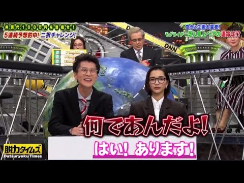 ねどっちなのあ俺がそうか下に手やってれ ばここに落ちたってことですかうん ちょっとどっちにしても弁償しなきゃいけ ない番組から番組ではダメなんすか番組 じゃ無理だでやった人がえやても 100万円持ってないな うーん え なんかなんかできない賞金100万円の なんかやつ賞金100万円賞金100万円 出せたらなんか企画ない一応スタンバイは してますねスできるなんでスタンバしてん のそんなのじゃ行きますか 100万脱力 チャレンジ すかということで急遽弁償台100万円を かけた2択クイズに チャレンジ正解するたに賞金がアップされ 問連続で正解できれば100万円が獲得 できたて のはを することはでるの [音楽] [拍手] か全力脱力タイムズはライフネット生命 とご覧のスポンサーの提供でお送りし ます今夜は遽企画を 更しチャレンを りし本来こういう企画をやる予定じゃ なかったんですけど三神さん自信あります かはいはいありますありますねなんであん だよ自信がないこういう予定じゃないんだ からさあ最初に予想していただく2択は こちらですまいろんなジャンルどなたか わかりますしていただきながらあの モノマネやったことそうですねはいえ こちら芸能人モノマネコロシアムというま 年末年始偽のモノマネ特番というで来て おりますこれはあのこっそりカメラを入れ させていただいております本人知りません これから対戦相手としてモグライダーの 写真を見せます ほうこの2人誰だか分かりますよねと聞き ます鈴木なさんはコンビ名を答えられる でしょうか はうわ絶妙だな多分共演はしてないですよ はい割とこうここ最近ちょこちょこ出した 人とかは把握してたりするんじゃないか なってじゃあ乗っかります はいなんか嫌っすねなんかそのえいいすか はいお願いし ます大事な1問目芝三神ペアの予想 は知っているいるうなるほどま1問目です からね 頼む今回ちょっとチャレンジしていただき