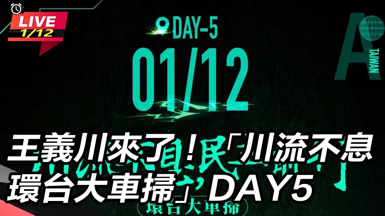 民進黨不分區立委候選人王義川,以及搶救王義川大兵行動發起人—民進黨新北市議員卓冠廷、政治評論員李正皓發起五天四夜「川流不息環台大車掃」12日進行第五天,《三立新聞網》現場直播。