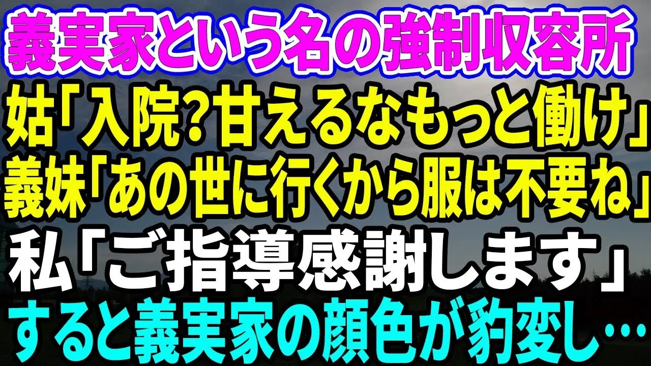 【スカッとする話】義実家という名の強制収容所で姑「入院?甘えるな。もっと働け」義妹「どうせあの世にいくから服は捨てておくわね」私「ご指導感謝します」すると義実家の顔色が豹変した【修羅場スカッと総集編】