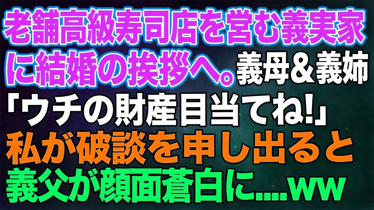 【スカッとする話】老舗高級寿司店を営む婚約者の実家に結婚の挨拶へ。彼母&姉「お父様はシルバー人材センター?…ウチの財産目当てねw」→私が破談を申し出ると…義父「今すぐ全員彼女に土下座しろ!」【修羅場】