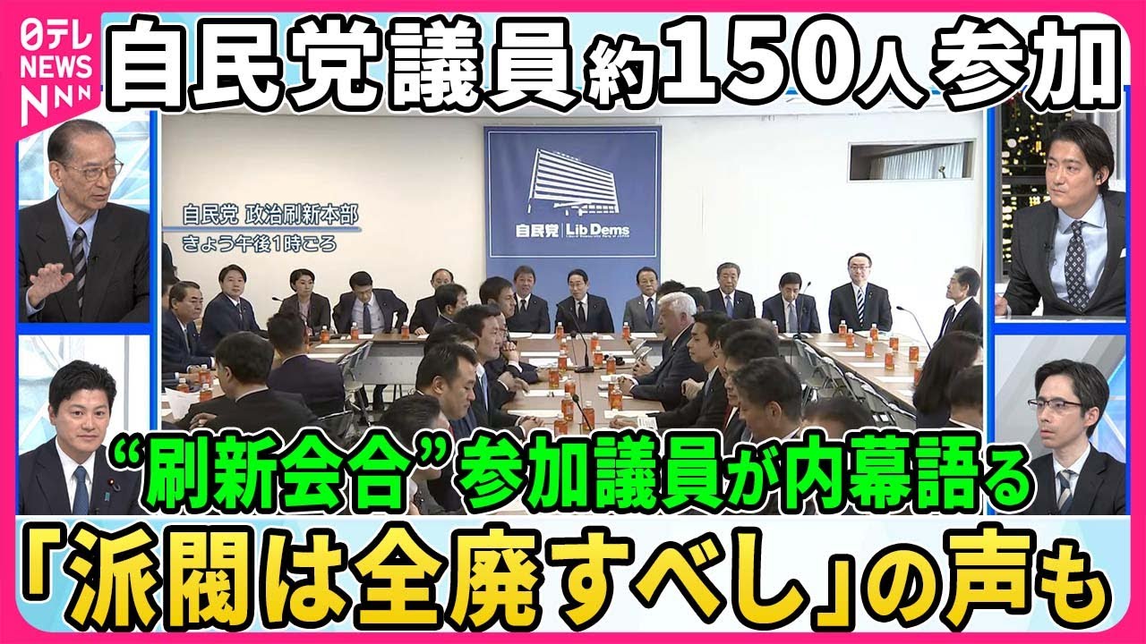 し ますはいえ今日はですねこのゲスト3方を 交えてま今のこの時代そしてかつての時代 そして全てを知る様々な視点からえ今日の ですねこの政治改革とは何かといった ところを議論を進めていきたいと思います えまずはですね今日の政治作新本部につい て話を進めていきますがえ今日の会合は当 所属の全議員が参加できる形で行われまし てえ今日のゲスト三谷さんも出席をされて いらっしゃいましたまずですねこの会の 中身について色々お伺いしたいんですが この会合にはですねおよそ150人が参加 え岸田総理は50人ほどの意見に耳を傾け たということなんですがどうなんでしょう この会場の雰囲気というものはどのように 受け止めましかあのまいろんな方が いろんなことをおっしゃいますけれども 非常に発達な意見がえあったと思います はいあそうですかはあはああのまもちろん 日にはいろんな上野木の先生方がま派閥の 領収と言われるような方々もたくさんえ 並んでいらっしゃいましたけれどもやはり この政治改革をしていかなければいけない というこの思いというのはですねやはり 全ての議員に共通でありまして自分の思う こと特に地元に帰ってどういう話を受けた まそういったことをえ共有する本当に熱い 議論というものが行われたという風に思っ ていますああのま大い3時間の会合で50 人ほどが発言したということなんですが どうなんでしょうかこれ1人何分あたりの 発言でとかそういう風なルールとあったん ですかあのルールはありませんでしたあ なかったんですかしかもあの何時までに この会合を終わらなければいけないという ような決めもなかったのであそうなんです かはあははあの1人1人がですね自分が 感じていること考えてることを思うがまま にお話しさせていただけるそういった会合 でしたうんうんこれあの今回のこの政治 作新本部のま論点としてはですねこのま 精子と金の問題の透明性の問題ですとか さらにはこの派閥のあり方まま様々ある中 でもこの2つにですねま一定議論がま修練 されていくのかなというのが私たち報道の 見方なんですがどうなんでしょうか今回の この会においては意見としてはこのどちら が多いとかですね他の意見もまたどうなっ たんですかそうですねまずあの全ての発言 者に共通していたのが地元で本当に厳しい 声を聞いてる今のその政治に対する不信と いうものは非常に強いものだということを 様々な具体例ととに話をしていただきまし たその上で今お話されたえうんこの政治