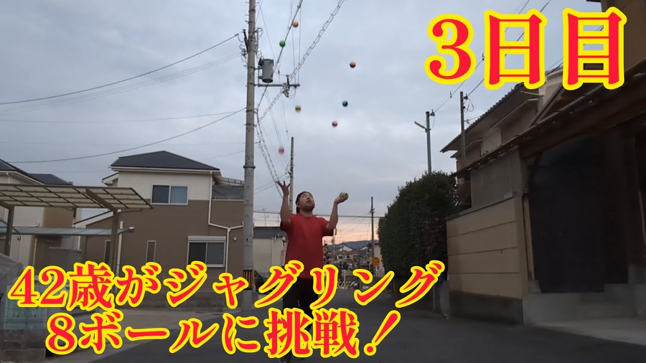 42歳がジャグリング8ボールに挑戦!3日目(2024年1月17日) 惜しいのが出た! マジ大道芸人