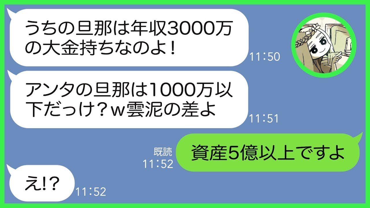 【LINE】年収3000万の社長夫を自慢してくる金持ち自慢のウザいママ友「アンタの旦那は1000万以下だっけ?w」私「資産で言えば5億以上です」→マウント女に衝撃の事実を伝えた結果【総集編】