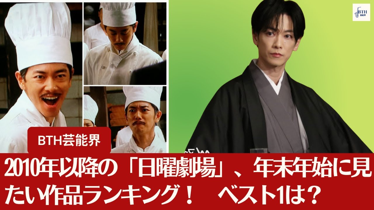 2010年以降の日曜劇場再放送して 欲しい作品ランキング1位は何か2023 年12月17日から12月24日までの間 ネトラボの調査隊が年末年始に再放送して 欲しい2010年以降のTBS日曜劇場の 作品はというアンケートを行いました今回 のアンケートでは計 1332票の投票をいただきました たくさんのご投票ありがとうございます 2010年以降の日曜劇場で年末年始に もう1度見たいと多くの指示を集めたのは どのドラマだったのでしょうか早速結果を 見ていきましょうまる第2位家族の形第2 位は得票数75票の族の形です香慎吾さ 主演で2016年に放送されました香取 さんエンジ39歳独身の結婚できない男と 上のジュリ3エジルバイの再婚しない女を 中心に描かれたドラマです西田俊之さん 演じる結婚できない息子の破天荒な父役と 吹純さ演じる再婚しない娘のお切開な母が 登場し平和なはずだった独身2人の それぞれの生活は大あれに独身を貫く2人 の関係や親子を感じるバトルなどに注目が 集まりましたまる第1位天皇の料理番第1 位は得票数214票の天皇の料理番です 宮内省の主クリア町を務めた実在の料理人 の障害を描いた同盟小説が原作で2015 年に放送されました田舎で厄介者扱いされ ていた主人公が多くの試練を乗り越えて 料理人として成長し26歳の若さで天皇の 料理版野沢を掴み取る物語です主人公の 秋山淳倉を演じたのは佐藤健さん料理人の 役を務めるために撮影がスタートする前 から学校へ通い作中では見事な包丁さきを 見せましたまた徳倉の妻役である黒木花 さん友人役の桐谷健太さんと江本ゆさん兄 役の鈴木亮平さんなど豪華なキャストが 揃っていますこれに対しネットの反応は 佐藤けさんの天皇の料理版も楽しめた ドラマでしたが1980年に放送された 酒井正明さんの秋山徳蔵かがたけしさんの 神村慎太郎の天皇の調理番はとても心に 残る良いドラマでした何年か前CS放送で 再放送をやっていたので見ましたが40年 経って見ても色せることなく哀愁ある良い ドラマでした明しさんまさん田中裕子さん も出演されてましたナレーションがあみ清 さんでしたね家族の形は良いドラマだった カト慎吾君が等身台の青年役を自然体に 演じていた相手役の上のジリさんとの息も あっていた父親役の西田俊之さんもいい味 を出していたカト君は当時スマップ解散 騒動で大変な時期での主演ドラマだったが そんなことを感じさせなかったまたカト君 と上野じりさんの共演のドラマが見たい