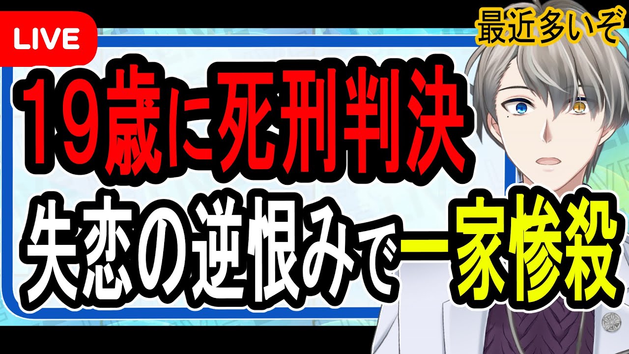 ついにこれは結構思いですね少年死刑確定 者なんて久しぶりに聞きましたけどであの 失恋の逆恨みで一家斬殺とまここまで行き 切ってしまうと逆に言い方悪いんやけども そのやっぱり彼女さんの選択は正しかった よねこんな危ない人とあってで多分すごい 被害者あの遺族とかは自分たちのこと 責めると思うよねお父さんお母さんこれ なくなった事件なんやけど私が断ったから とか断り方が悪くてお父さんお母さんが なくなっちゃったんじゃないか多分すごい 自分のことを責めてると思うけど今回の話 を聞けばみんな分かると思うんやけどもう 間違いなくもう被害者だったりとか遺族は 間違いなく悪くないですもうぜもうどこ 大体ねこういうトラブルって大なりしなり なんかまああるでもその上ででも犯罪はし たらあかんちゅうことは分かるわけけど もうここまでミリの単位も落ち度がなく もう一方的にこんなことしてくるっていの で本当に衝撃を受けるような事件ですはい で中にはインターネットではその弱者男性 に対してま強く当たったことにの報復だ みたいなこと書いてるやつがいたんですよ あの報道当初ねこういう事件が起きたって なった時にとかなんか恋愛関係みたいなの がこう匂わされたりとかした時に本当に 失恋だったんだけどそういう風にこうやっ たかからそれはそうだろうみたいななんか あの殺され当然だみたいなこと投稿してる やつがいましたがまそういうことじゃない よと実は後半で色々明らかになったことが ありますということですはいで内容なん ですけども質疑応答は最後にまとめて 受けようかなっていう風に思いますために なったなと思っていただければチャンネル 登録高評価よろしくお願いしますという ところであちなみになんですけど高層期限 あるやんっていう話がありますがま確かに 控訴期限はあるんですけど被告人本人が もう控訴しないっつってるんであもう死刑 確定なんだなっていう風に僕は思ってます で認知の歪みレベル100大なりしなり 人間って認知歪んでるんですよ分かります 大なり商内ね認知は歪んでるんですけどだ から認知が歪んでない人っていうのはい ないわけですねただその振幅っていうのが あるわけでまこれで言うとレベル100 ぐらい一方的に恋愛感情そして逆恨み一家 殺害で突然の強行ですね狂気を準備して 尾行して突然窓ぶち破って侵入と前代見物 の大事件が発覚した後そうあのあごめん なさい私は反省していませんですねごめん なさい反省していますって書いてますけど 反省していませんと言い切る被告でま正規