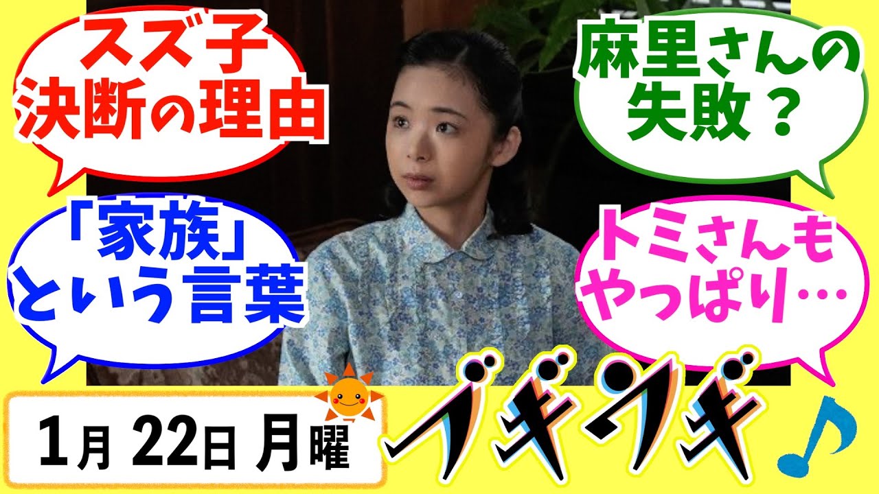 皆様お疲れ様です朝ドラ大好きチャンネル です今日は1月22日 月曜日早速皆さんの感想を見てまいり [音楽] ましょうすず子は今まで花だけの人たちや さよちゃんと血の繋がらない家族を気づい てきたコミさんの社員や芸人も家族やと 思ってます坂口さんの家族的なまとまりが ありますんやこの言葉は鈴子の心にすごく 響いたと思うまた自分の家族が持てるそれ も大勢 のやや自分勝手な理由で鈴子の歌手引退を 引き止めようとするハト先生を嗜めるマリ さん女性の自由を歌いながら音楽に 打ち込めるのは私がお家のことを一手に 引き受けてるからでしょとこぼしてしまう ハ先生が音楽家ハト善一として一流である ためには全力で支えるマリさんという存在 があるからだと鈴子に伝えてしまうことに なってしまっ た我慢するのはいつも女おかしいわよと 不満を口にするさん彼女もきっとハト先生 と結婚する前は何かに没頭していたのかも しれないよね結婚してからでも何か自分の 好きなことがしたくてもハト先生を支える ためにその時間がないまりさんは歌手を やめて家庭に入ったすず子の未来の姿なの かもしれ ないさんはきっと仕事よりも結婚を選んだ すず子の未来なんだろうけど不満を抱え つつも世間的に見れば大きな幸せを多価し ているんですよねそんな姿を見てしまっ たら鈴子が歌手をやめようかと由でしまう のも分かっちゃうよ なとさんの言い分は一貫している鈴子が 年上だとか信頼できないということでは なく人気歌手と社長夫人は両立しない どちらかに決めて欲しいそれ だけ愛すさんがすず子の恋人である以前に めちゃくちゃ重い気持ちを持った大ファン であるのがここで聞いてくるんだねそりゃ これだけ反対するよね 仕事と家庭のいずれかを迫られるすず子 社長となる愛すさんを支えるには仕事を 捨てなければ無理今まで会社経営をしてき たとみさんだからこその実感だし両方 取ろうなんてしたらどちらも中途半端に なってしまう単純な嫁は家に入れではない んだよ ね先代に怒られた芸人を慰めたり落ち込ん だ芸人に三を食べさせたりしたという若き 日野とさんなんだろうもし鈴子が社長夫人 になっても同じことをするだろうなって 思ってしまうきっとすず子には村山工業の 社長夫人としての適性もあるんでしょうね