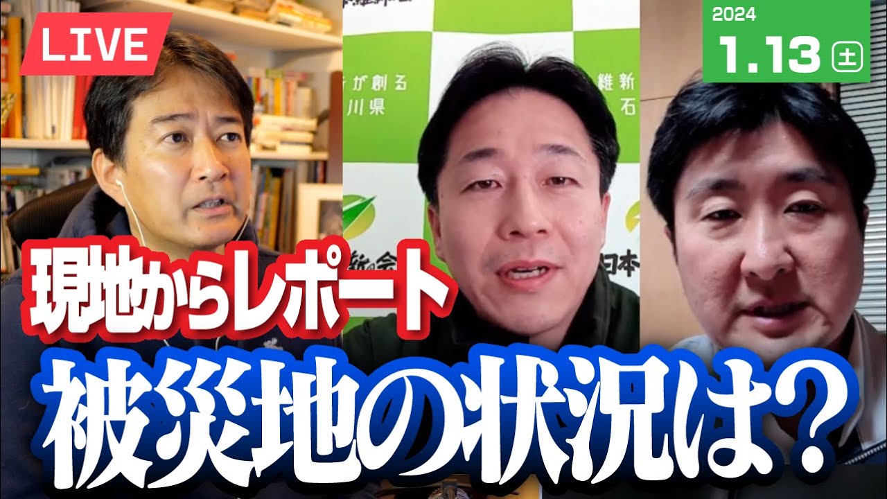 ことなんだろうなっていう風に思います はいうんただそう言いながらそのねあの そういう活動されているう磯さんの自宅も ねあのそういう劇場化の状況にあるという ことで多分職員の皆さんのねあのもう被災 されてる方があ多いんだろうなっていう風 に思いますのでえま同じ被災をしながらも 寄り添っていくという活動していくという ことでなかなか困難さもあると思います はいけどねでもご家族とか大丈夫ですか 本当にそのいやあのだいぶねあの理解して いただけると言いますかまあの将来には やっぱ不不安はありますけれどうんあの どういったね保証がいただけるのか あるいは自分でどこまでできるんかいう ようなところでいやそうですよね今本当に ね自分の中ではすごいいろんな感情がね 入り乱れてますねうんなるほどですねだ からうんうんそういった疫化にどのよう 保証がされるのかどうなのかっていうこと ですし多分それに対応するためには やっぱりこういった義援金が大きな力に なってくるだろうということもあるので 是非その内町ま石川県もあの募集してます けど内町の寄付の方していただきたいと いうことですよね是非はいお願いしたいな と思いますで私もあのXの方でポストとか 色々してますのであの情報発信をしてい ますでできるだけその北部地域の悲うんと か あの被災者のその状況現状ま自分の立場を 踏まえてえっとつさに発信していこうと 思っていますもうはも何もなくはい例えば 損害保険がどれだけあったとかもあの全部 あの皆さんに公開しながらあの実際こうな んだよという現状を知っていただきたいな とは思っていますなるほどですねですから 是非あのこれさんのポストあのx小さんの Xの投稿これこちらのご覧なって よねうんありがとうございましたはいいや なんか大丈夫ですか体調大丈夫ですかでも あ大丈夫です大丈夫ですはい大丈夫です まだまだはい大丈夫ですねあの元気な忙し さんしか知らないからなんかちょっとあの あれなんですけど本当あの是非ねまたあの でも今本当にさっきあの小林さんにもお話 したんですけど政治が大きな役割を果たす 時なんだろうという風に思いますしこの今 こそこうがですねあの役割を果たす時なん だろうという風に思いますのでえ是非歯 維新のメンバーとしてま原職もういさん しかいないということですのであのなんと かですねまたあの我々国政ともついで いただいてえまたこれからも状況を教えて いただければなという風に思いますので