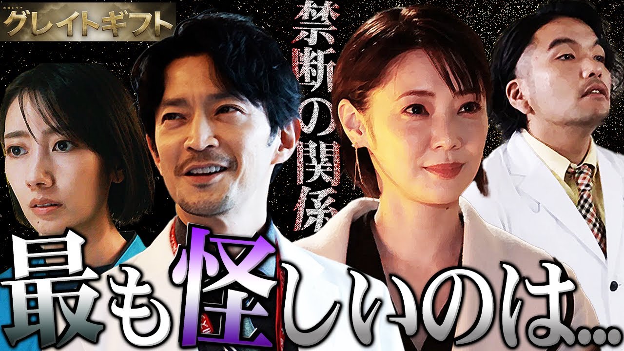 どうも66組のエンタミラボようこそ66 組のペチシトキメジですというわけで グレイトギフト第1は終了いたしまし たしゃ面白かった面白かったねうん本格 医療ミステリーっていう世の通りそうだね うんちゃんと考察できましたねね字幕は つけた方がいいですねちょっとねボボボボ な感じキャラじゃなそうけど面ソまさんが かっこよすぎてさなんかあの根暗なキャラ さなかなか最初入ってこなかったそんな わけねえなってやっぱかっこよすぎんだ よっすぎでもドラマ的には1話から攻めて ましたね3人死んでますからねねすごい ですかその中でもやっぱ安田さんが死ん だっていうのはよ一般人の田田さん一般人 すぎるよいやでも安田ロスがすごいらしい ふざけてるだけだろみんふざけてんなあと はやっぱ倉之助さん良かったねいやね本に 怖いですよ事長がなくなった時のあの顔よ ねンとしたねねその前のねソまさんが助け を求めた時のオム顔が良かったあ良かった ね何もないよとあそこやりたいがための 倉之助さんねそうだねあ良かったね 面白かったね面白かったですよはいで考察 的にもねかなりしっかり考察できる作品だ と思うのでま今回の考察ポイントとしては 殺人給金ギフトを作り出した新犯人は誰か まあ大きな縦軸だねこれはねでこれに関し てはその倉之助さんが演じる白取に関して は新犯人候補は外れた感じがしましたね そうだよねうんうんそれを利用した人物だ からまその倉之助さんが結構中心に動いて きそうではあるけども犯人ではなさそうだ ぞというところでじゃあ誰なのかっていう とこをね正直この1話に関しては結構 エピローグ的な感じだったからまこっから って感じなのでねま怪しい人物何人かあげ てうんま候補としてこの時点で怪しいの誰 かっていうのを色々語っていきましょうと いうことで是非とも最後までよろしくお 願いいたしますというわけでそんなグレト とはテレビ朝日系列で毎週木曜日9時から 放送されてるドラマでありまして僕たちの 動画その翌日に直後考察動画あげており ますし盛り上がり次第では直前高説も考え ておりますので是非ともどんなコメントで もいいのでお待ちしておりますという ところでねま新犯人について色々語って いきたいと思いますがま1話終了時点で 個人的には最も怪しいと思った人物はです ね軍事ですねおおメインデシ行きますか 軍事いやそうだねまずですね看護市長吊し と愛人関係っていうのがありますねはい はいうんさらに藤巻の奥さん魔法の元恋人 でもあるよとうんもうこの時点でね