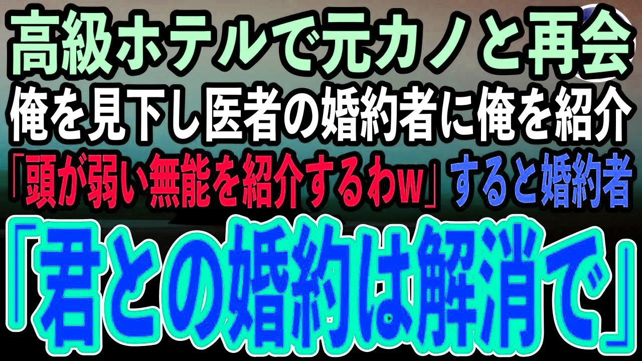 【感動する話】医学部受験を辞退した理由を知らずに俺を振った元カノと高級ホテルで再会。医者の婚約者に俺を紹介する元カノ「頭が弱い無能を紹
