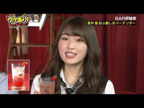 マイクロバブルを生み出すという風に科学 的に解明された美味しさの秘密を出 素晴らしいですね ほインフィニティシェイクでマイクロ バブルを生み出す カクテルちょっと素人にはよくわからない のでとにかくすごそうなカクテルサイド カーを作ってもらいました材料は ブランデーとオレンジリキュールあとは レモンジュース だけそしていよいよ気になる インフィニティシェイク へお [拍手] [音楽] すごいこのように八の字に振ることで 生まれる細かい泡はマイクロバブルによっ てまろやかな味わいのカクテルができる そう ですこちらがインフィニティシェイクで 生み出されたサイドカーそのお味 はしるねいっぱい2200円 は 本当にキさんのカクテルはこうリッチな 感じがですねもう溢れてましてそこに感動 しますね本当にこう中に含まれてる1つ1 つのお酒のキャラクターが全部こう中に 入ってるという感じがしますね続いては玉 さん一押しの綺麗な女性バーテンダーをご 紹介最初のバーテンダーさんはえーまず ですね元AKB候補性 のらVTR VTR東京赤坂にあるバーアルジャーノン シンフォニアわあなんかこのバーの代表を 務める元AKB候補性のうわき バーテンダー が あらららかい綺麗怖や なはい へえおこの後青いユニのバーテンダー 登場ウイスキーズ3の小笠かさんです どうぞ [拍手] えここでバーテンダーの小笠原さんにMC 3人に合うカクテルを作ってもらい ますさちゃんのカクテルもベースはジです がさらに加えるのがこれがあのりんごの ブランですゴ好きです好きですもちろん アプリコットのデトリンゴジュース サイダーザクロのシロップを加えて 完成こちらはお名前はこちらがエンジェル フェイスです エルフ照れてる や言われてあのいつもニコニコしててあの 可愛らしくて素敵な笑顔なのであと渋谷