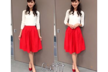 @熊井友理奈 @熊井友理奈 2015.12.02 @熊井友理奈: * 昨日の衣装 JETSETのお洋服だよ #王様のブランチ #衣装 #knit #red #skirt #white #jetset #coordina… …